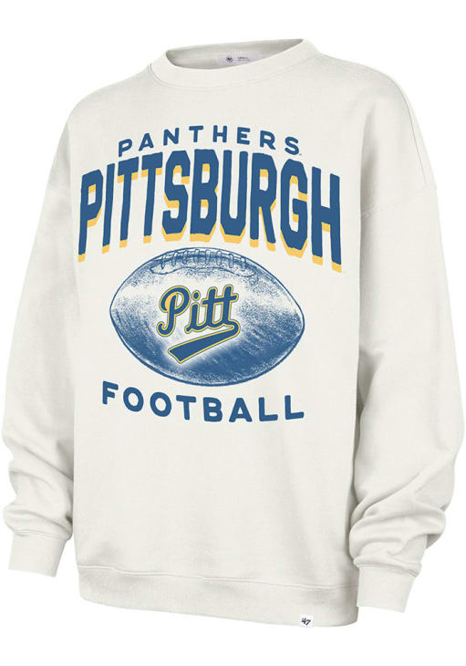 Gear up for the ultimate game day experience with this remarkable Pitt PanthersWomens White Arch Cloud Oversized Crew Sweatshirt! Designed with the true fan in mind, this Panthers Long Sleeve Sweatshirt features a vintage screenprint team name and team logo on center chest. Stay warm and comfortable with this Womens Panthers Panthers Crew Sweatshirt.