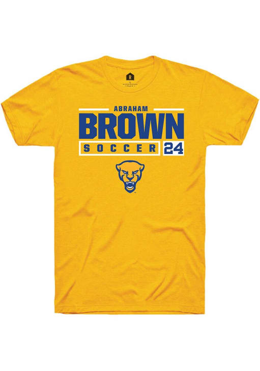 Abraham Brown Gold Pitt Panthers NIL Stacked Box Short Sleeve T Shirt