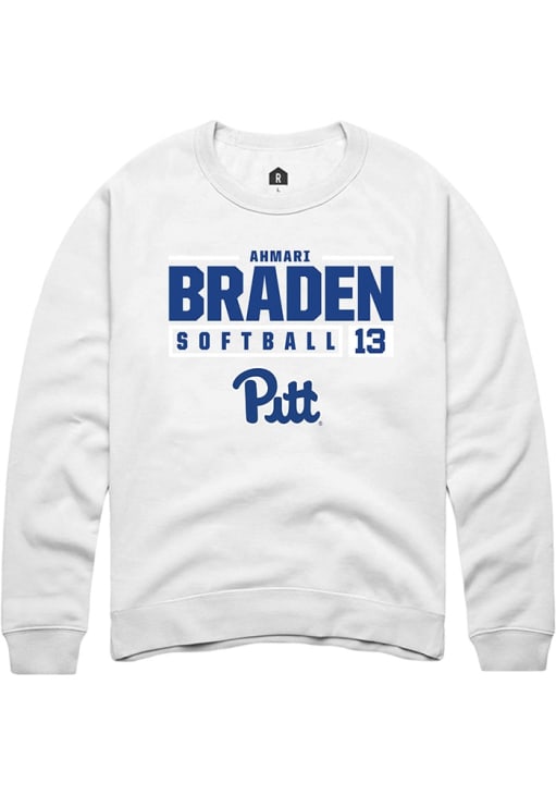 Ahmari Braden Rally Mens White Pitt Panthers NIL Stacked Box Crew Sweatshirt