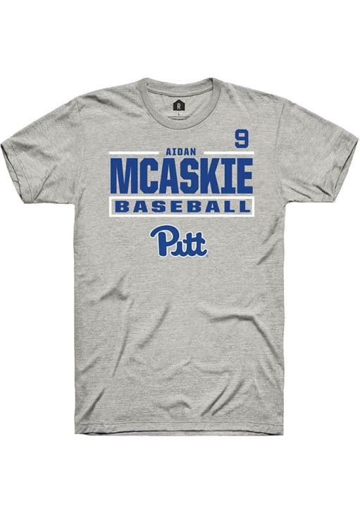 Aidan McAskie Rally Mens Ash Pitt Panthers NIL Stacked Box Player T Shirt