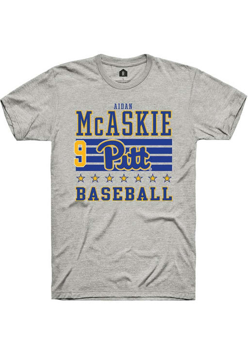 Aidan McAskie Rally Mens Ash Pitt Panthers NIL Striped Player T Shirt