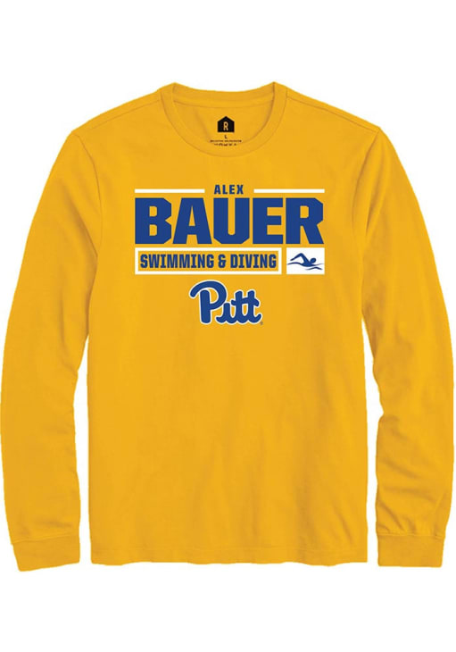Alex Bauer Rally Mens Gold Pitt Panthers NIL Stacked Box Tee