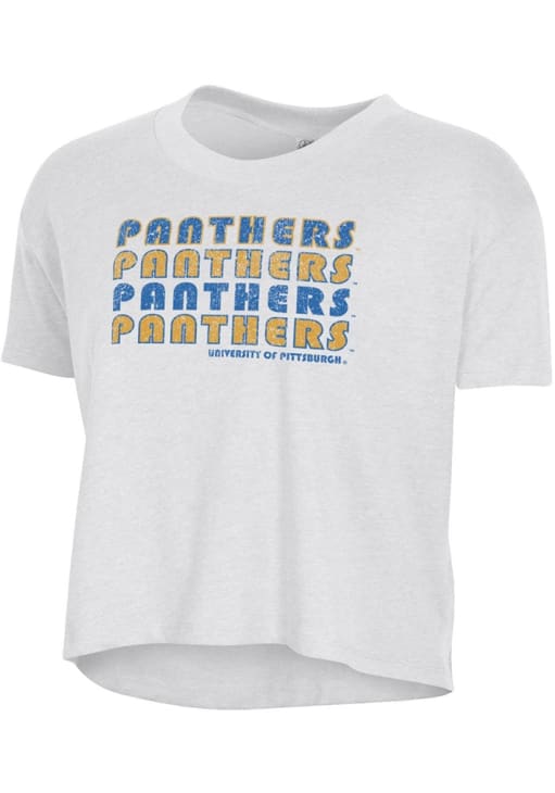 Display your team spirit with this remarkable Pitt Panthers White Headliner Crop Short Sleeve T-Shirt! The Panthers Short Sleeve Tee showcases a screen print graphics that truly sets it apart. Stand out from the crowd and proudly declare your allegiance to the Panthers with this exceptional White Panthers T-Shirt. Go Panthers!