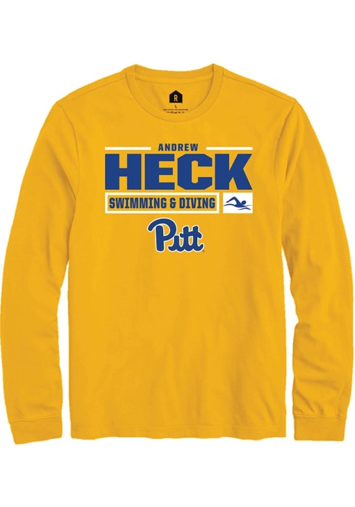 Andrew Heck Rally Mens Gold Pitt Panthers NIL Stacked Box Tee
