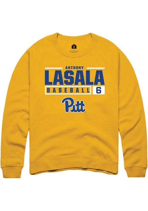 Anthony LaSala Rally Mens Gold Pitt Panthers NIL Stacked Box Crew Sweatshirt