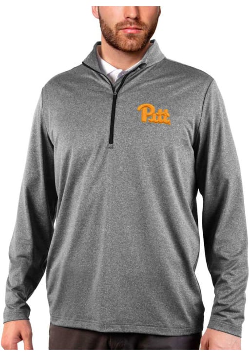 Embrace the warmth and showcase your Panthers pride with our Pitt Panthers Long Sleeve Qtr Zip Pullover. This Mens Black Rally Long Sleeve Pullover offers a team logo heat seal on left chest for the perfect combination of comfort and style. Elevate your everyday look with this must-have Pitt Panthers Long Sleeve Qtr Zip Pullover.