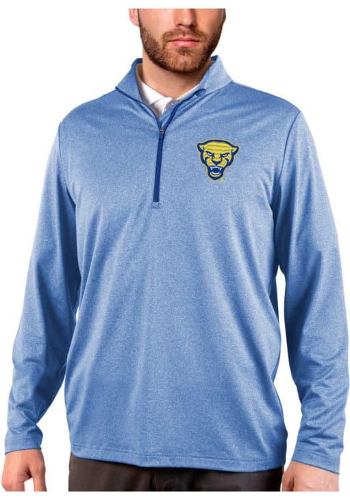 Embrace the warmth and showcase your Panthers pride with our Pitt Panthers Long Sleeve Qtr Zip Pullover. This Mens Blue Rally Mascot Long Sleeve Pullover offers a team logo heat seal on left chest for the perfect combination of comfort and style. Elevate your everyday look with this must-have Pitt Panthers Long Sleeve Qtr Zip Pullover.