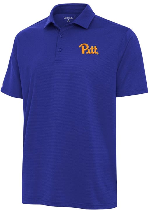 Mens Pitt Panthers Blue Antigua Valid Textured Short Sleeve Polo Shirt