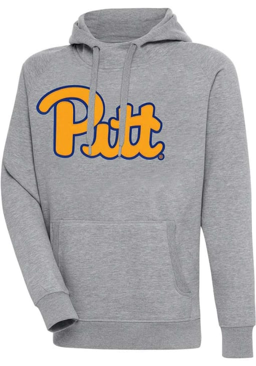 Mens Pitt Panthers Grey Antigua Full Front Victory Hooded Sweatshirt