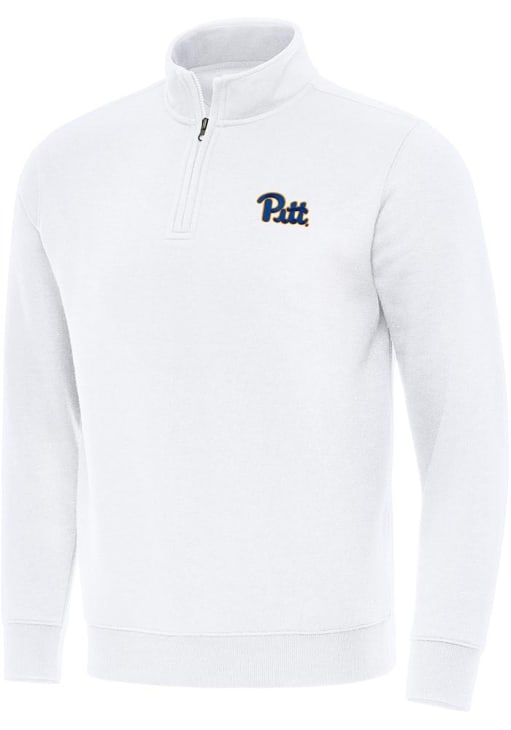 Embrace the warmth and showcase your Panthers pride with our Pitt Panthers Long Sleeve Qtr Zip Pullover. This Mens White Victory Long Sleeve Pullover offers a brushed back fleece material for the perfect combination of comfort and style. Elevate your everyday look with this must-have Pitt Panthers Long Sleeve Qtr Zip Pullover.