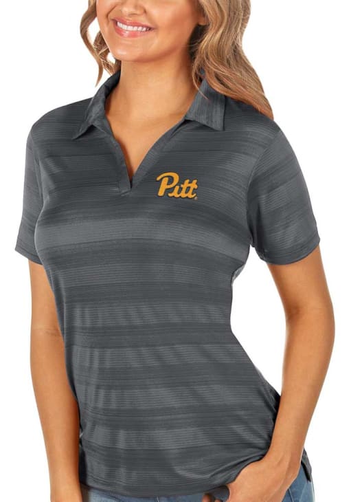Enhance your professional style with this striking Womens Grey Short Sleeve Polo Shirt! Showcase your team pride among colleagues with this exceptional Panthers Grey Compass Short Sleeve Polo. Stand out and make a statement in this Pitt Panthers Short Sleeve Polo, featuring a team logo on chest that adds a touch of distinction to your look.