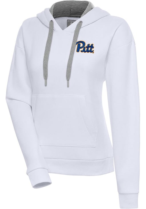 Womens Pitt Panthers White Antigua Victory Hooded Sweatshirt