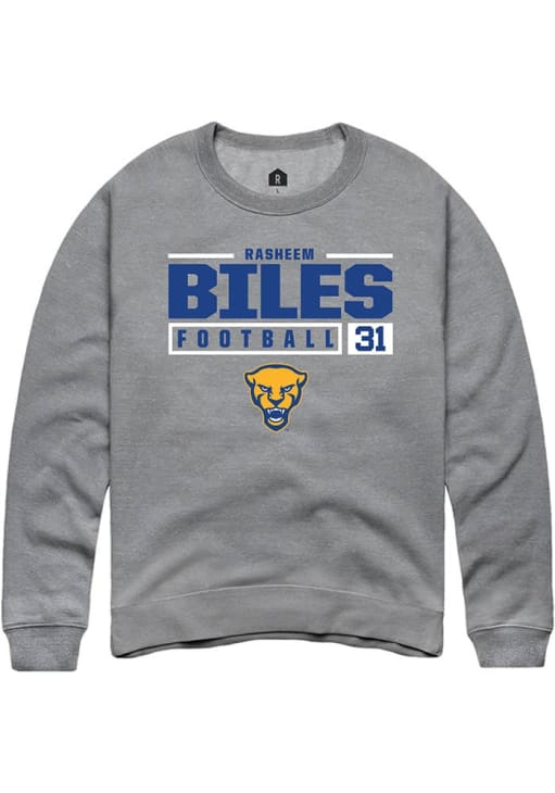 Rasheem Biles Rally Mens Graphite Pitt Panthers NIL Stacked Box Crew Sweatshirt
