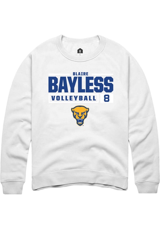 Blaire Bayless Rally Mens White Pitt Panthers NIL Stacked Box Crew Sweatshirt
