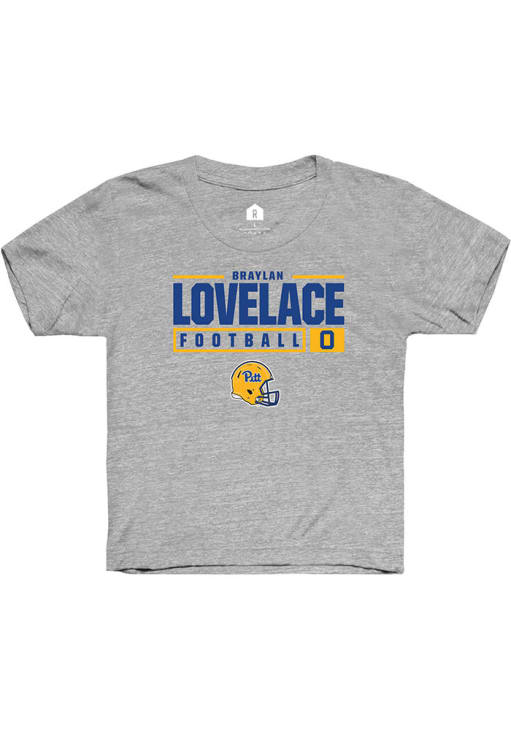Braylan Lovelace Rally Youth Grey Pitt Panthers NIL Stacked Box Short Sleeve T-Shirt