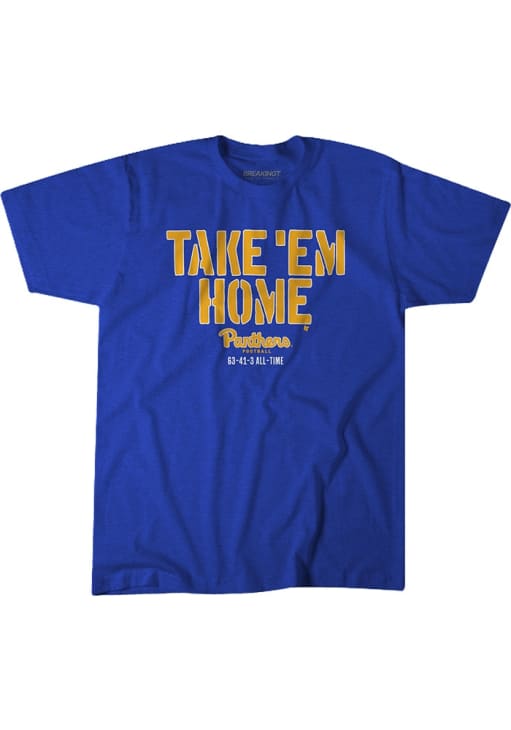 Support your Pitt Panthers in this Blue Short Sleeve Fashion Tee! This Take Em Home Football Fashion T Shirt features a screenprint team graphic on front chest. Be ready to yell "Go Panthers" when you wear this Panthers Short Sleeve Fashion T Shirt in your favorite stadium or on the street.