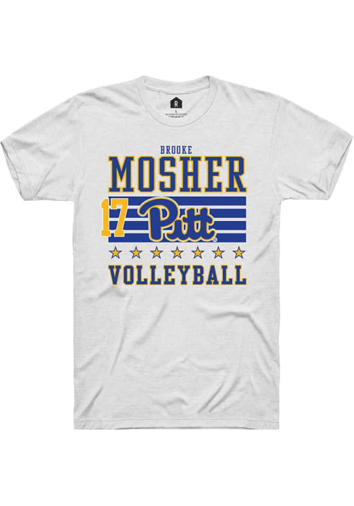 Brooke Mosher Rally Mens White Pitt Panthers NIL Striped Player T Shirt