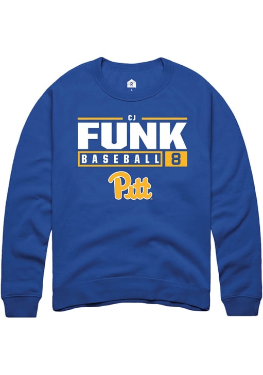 CJ Funk Rally Mens Blue Pitt Panthers NIL Stacked Box Crew Sweatshirt