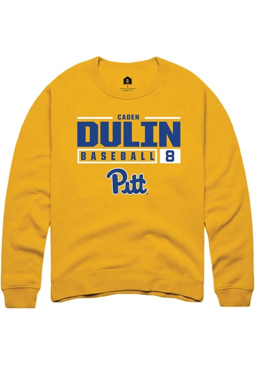 Caden Dulin Rally Mens Gold Pitt Panthers NIL Stacked Box Crew Sweatshirt