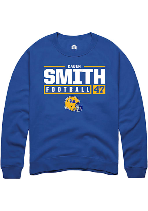 Caden Smith Rally Mens Blue Pitt Panthers NIL Stacked Box Crew Sweatshirt