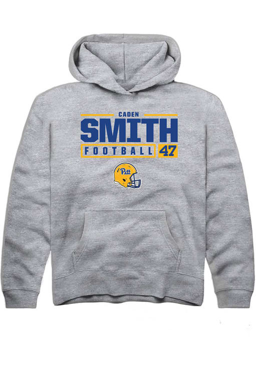 Caden Smith Rally Youth Grey Pitt Panthers NIL Stacked Box Long Sleeve Hooded Sweatshirt