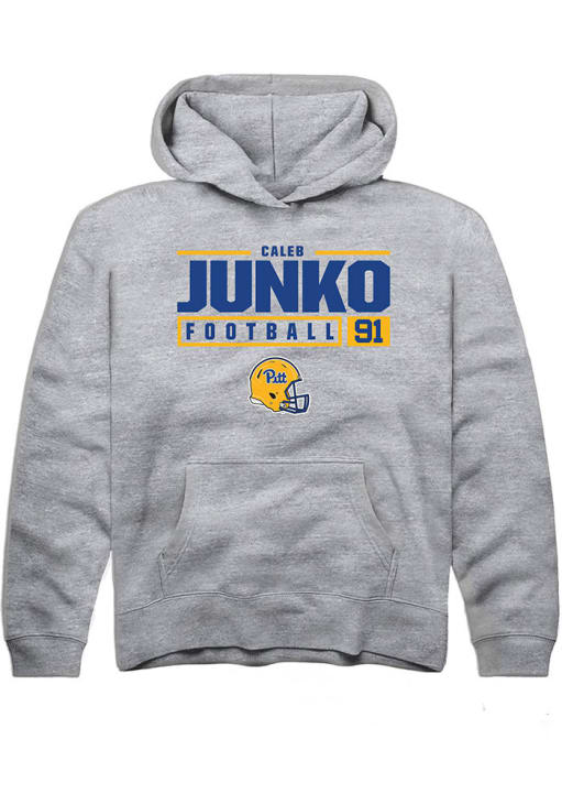 Caleb Junko Rally Youth Grey Pitt Panthers NIL Stacked Box Long Sleeve Hooded Sweatshirt