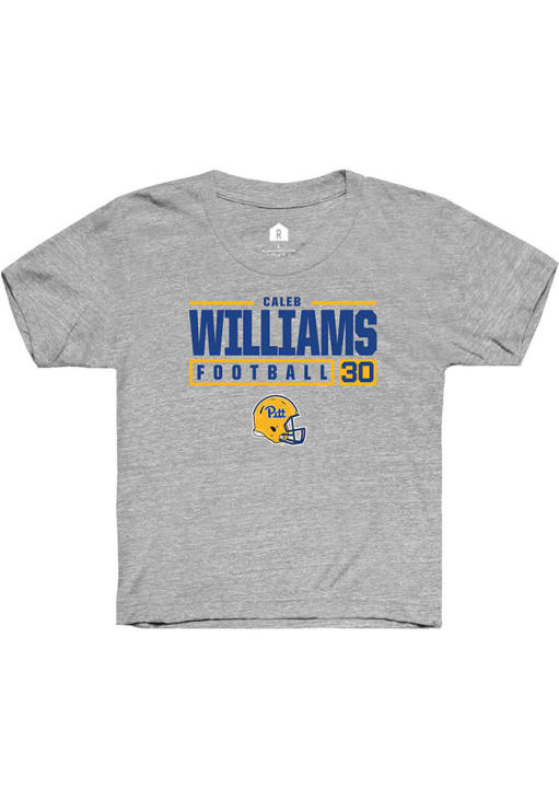 Caleb Williams Rally Youth Grey Pitt Panthers NIL Stacked Box Short Sleeve T-Shirt