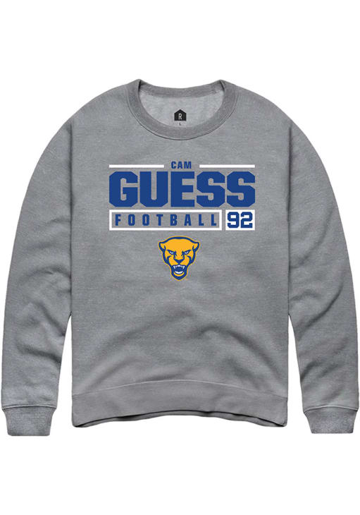 Cam Guess Rally Mens Graphite Pitt Panthers NIL Stacked Box Crew Sweatshirt