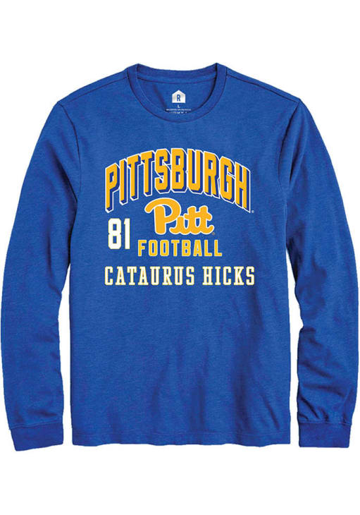 Embrace the spirit of your favorite player in this Pitt Panthers Blue Football NIL Arch Logo Cataurus Hicks Long Sleeve Player Tee! This Player T Shirt features a NIL graphic, so everyone will know you cheer for Panthers, Cataurus Hicks! This is the perfect Panthers Player Tee for game days. Go Panthers!