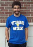 Display your team spirit with this remarkable Pitt Panthers Champion Blue Number One Design with Panther Head Short Sleeve T Shirt! The Panthers Short Sleeve Tee showcases a screen print of "Pittsburgh Panthers" with Panther Head across chest that truly sets it apart. Stand out from the crowd and proudly declare your allegiance to the Panthers with this exceptional Blue Panthers T Shirt. Go Panthers!
