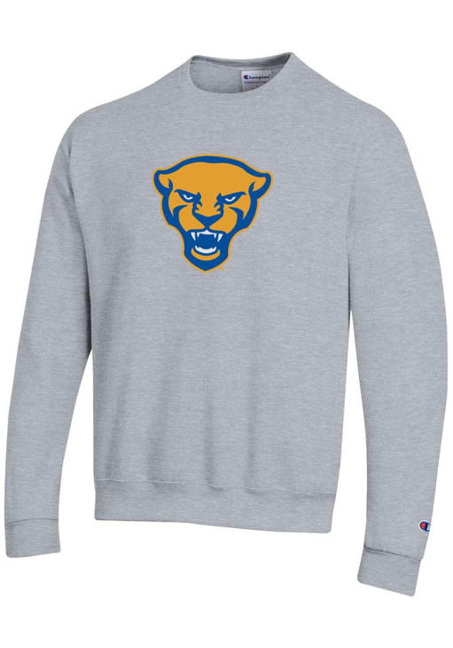 Mens Pitt Panthers Grey Champion Panther Head Twill Crew Sweatshirt