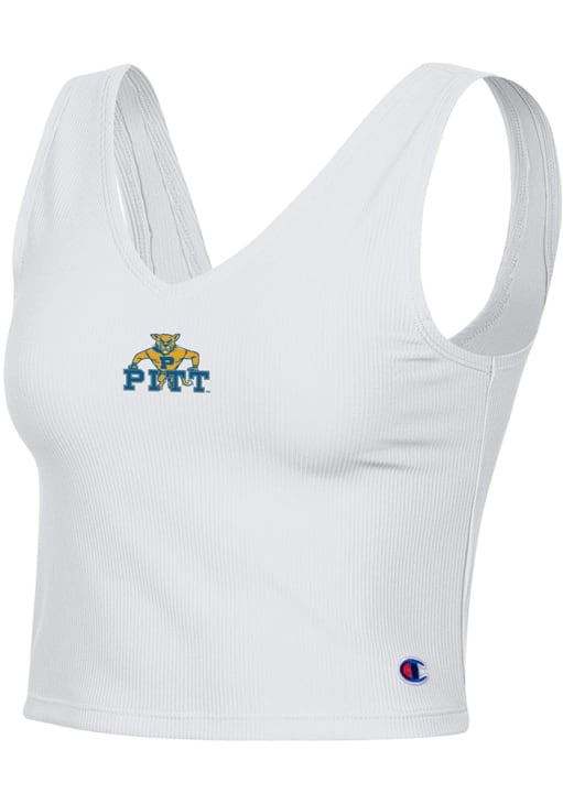 Elevate your tailgating style with this Pitt Panthers Womens Tank Top. Stay fashionable and comfortable in the refreshing White Ottoman Sleeveless Shirt. Discover the enticing details of this Panthers Tank Top, showcasing a *screenprint team logo on center chest or screenprint team name right bottom hem that's sure to impress.