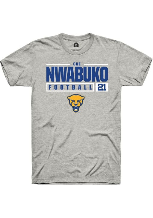 Che Nwabuko Ash Pitt Panthers NIL Stacked Box Short Sleeve T Shirt