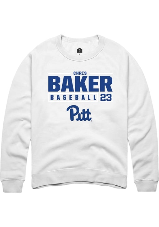 Chris Baker Rally Mens White Pitt Panthers NIL Stacked Box Crew Sweatshirt