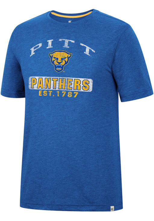 Display your team spirit with this remarkable Pitt Panthers Blue Zen Philospher Short Sleeve T Shirt! The Panthers Short Sleeve Tee showcases a distressed screen print team graphic on front chest that truly sets it apart. Stand out from the crowd and proudly declare your allegiance to the Panthers with this exceptional Blue Panthers T Shirt. Go Panthers!
