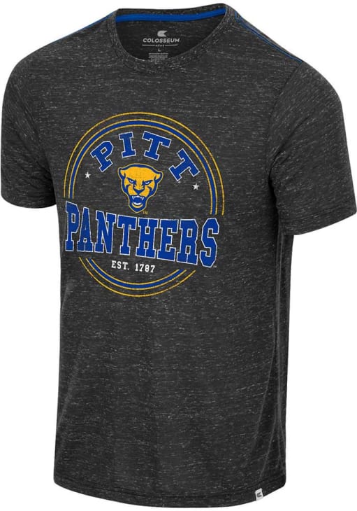 Display your team spirit with this remarkable Pitt Panthers Colosseum Charcoal Modicum of Gratitude Short Sleeve T Shirt! The Panthers Short Sleeve Tee showcases a distressed screen print of team name and logo across chest that truly sets it apart. Stand out from the crowd and proudly declare your allegiance to the Panthers with this exceptional Charcoal Panthers T Shirt. Go Panthers!