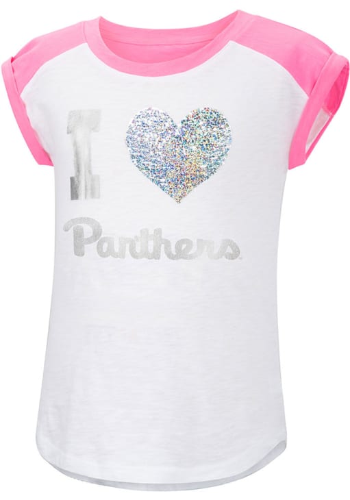 Show your support for Panthers in this Girls White Pitt Panthers Short Sleeve Fashion Tee! This Patty Cake Sequin Fashion T-Shirt features a rainbow flip sequin heart graphic that pairs perfect with any wardrobe. Get ready to show pride for your favorite team as you cheer "Go Panthers"