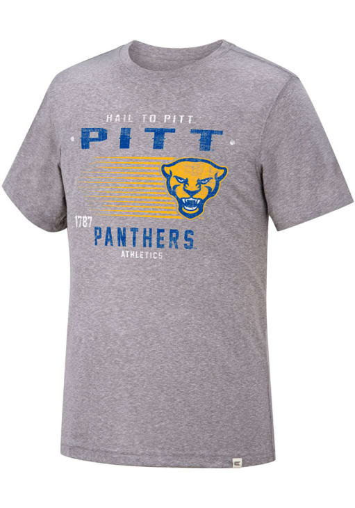 Support your Pitt Panthers in this Grey Short Sleeve Fashion Tee! This Les Triblend Fashion T Shirt features a distressed water based screen print of team name and logo graphic on front chest. Be ready to yell "Go Panthers" when you wear this Panthers Short Sleeve Fashion T Shirt in your favorite stadium or on the street.