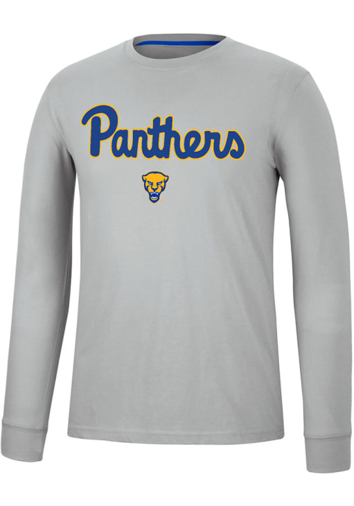 Show your Pitt Panthers spirit in this Panthers Grey T Shirt! This Panthers Spackler Long Sleeve T Shirt makes a great layer for cooler nights cheering on the Panthers. Featuring a screen print team graphic on front chest, this Pitt Panthers Long Sleeve Tee is an essential addition for every fan. Go Panthers!