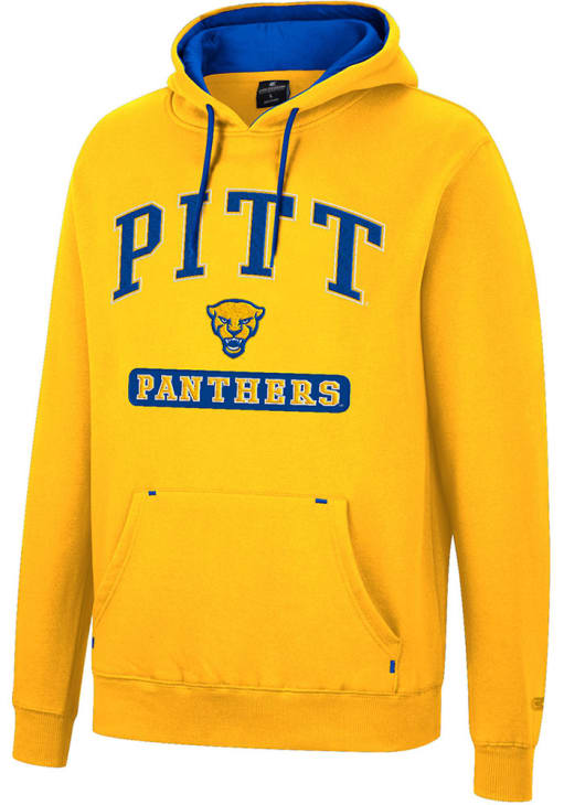 Embrace your Panthers pride and showcase your team spirit with confidence in this Pitt Panthers Long Sleeve Hoodie! Stay warm and stylish with the Panthers Mens Gold Scholarship Fleece Hooded Sweatshirt. Designed with twill applique team name and logo on front chest, this Panthers Long Sleeve Hoodie is a must-have for dedicated fans.