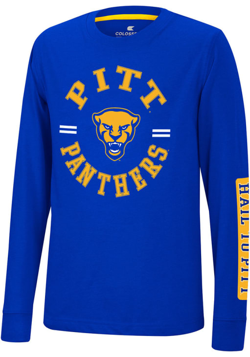 Your little Panthers fan a will love supporting the Pitt Panthers in this Blue Long Sleeve T-Shirt. This Trolley T-Shirt features a screenprint team graphic on front and sleeve.