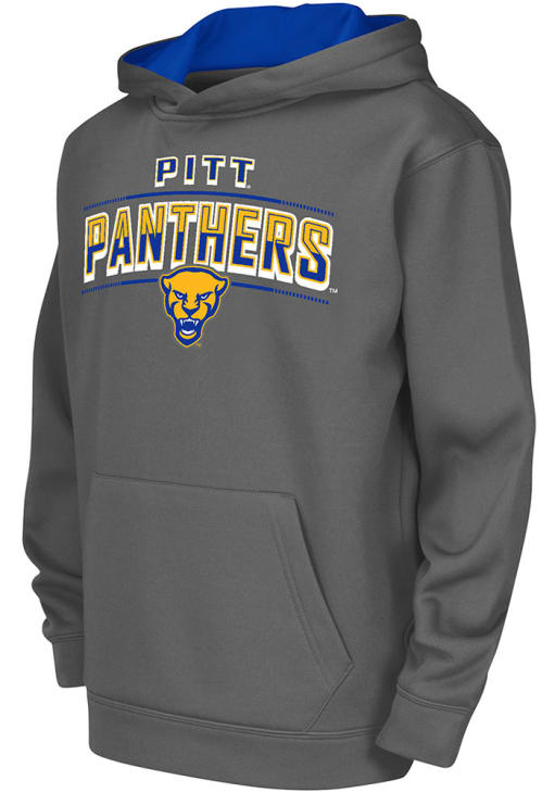 Size Chart for Youth Pitt Panthers Charcoal Colosseum Block Name Drop Long Sleeve Hood
