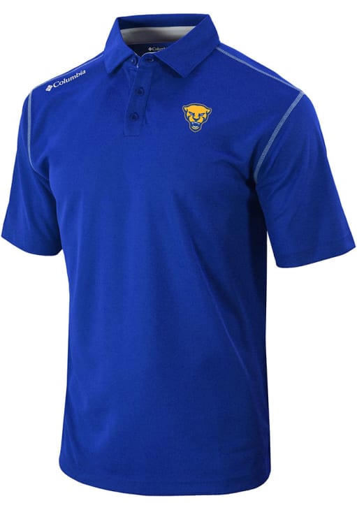 Mens Pitt Panthers Blue Columbia Heat Seal Omni Wick Shotgun Short Sleeve Polo Shirt