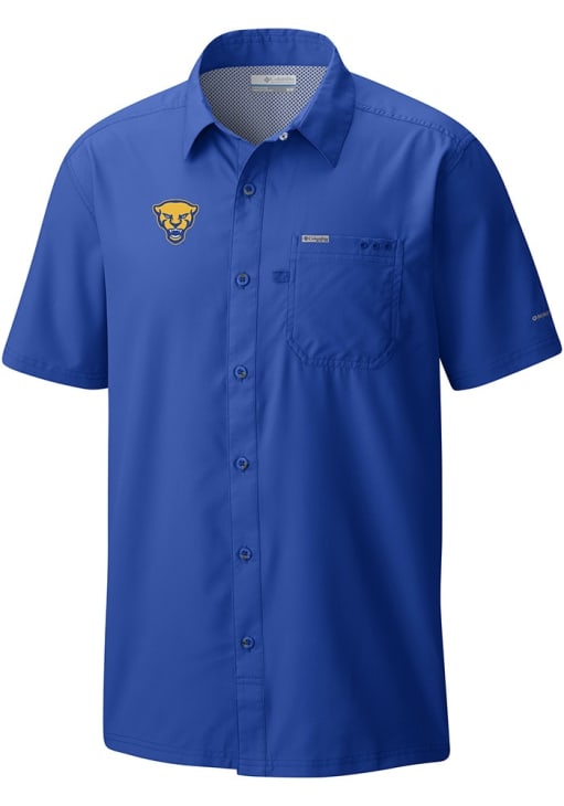Elevate your style for any occasion with this sophisticated Pitt Panthers Short Sleeve Dress Shirt! Let your Panthers pride show in this Blue Heat Seal Slack Tide Camp Button Down Shirt. This Heat Seal Slack Tide Camp Panthers Dress Shirt is perfect for showing your Panthers pride at the office. Featuring a heat seal team logo, this Pitt Panthers Dress Shirt has a subtle touch of fan support.