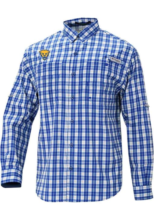 Show your Panthers spirit show in the office with this Pitt Panthers Dress Shirt! Embrace your team spirit and showcase it proudly in this Mens Blue Heat Seal Super Tamiami Long Sleeve Long Sleeve Button Down Shirt. This Long Sleeve Dress Shirt features a heat seal team logo.