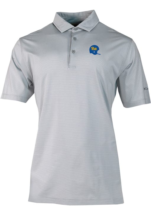 Enhance your professional style with this striking Mens Grey Short Sleeve Polo Shirt! Showcase your team pride among colleagues with this exceptional Panthers Grey Vault Heat Seal Double Hit Short Sleeve Polo. Stand out and make a statement in this Pitt Panthers Short Sleeve Polo, featuring a team logo on left chest that adds a touch of distinction to your look.