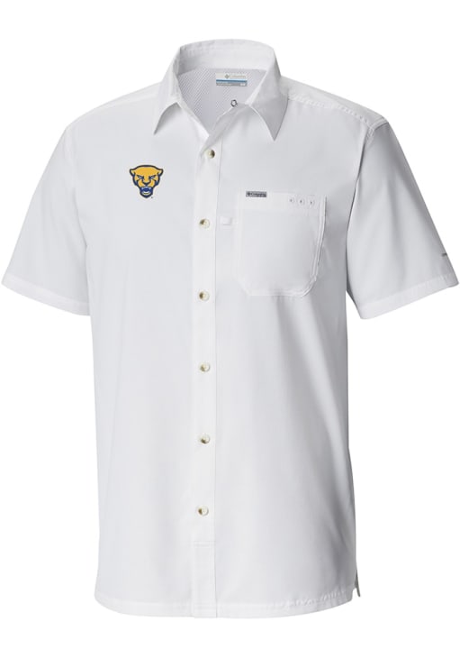 Elevate your style for any occasion with this sophisticated Pitt Panthers Short Sleeve Dress Shirt! Let your Panthers pride show in this White Heat Seal Slack Tide Camp Button Down Shirt. This Heat Seal Slack Tide Camp Panthers Dress Shirt is perfect for showing your Panthers pride at the office. Featuring a heat seal team logo, this Pitt Panthers Dress Shirt has a subtle touch of fan support.