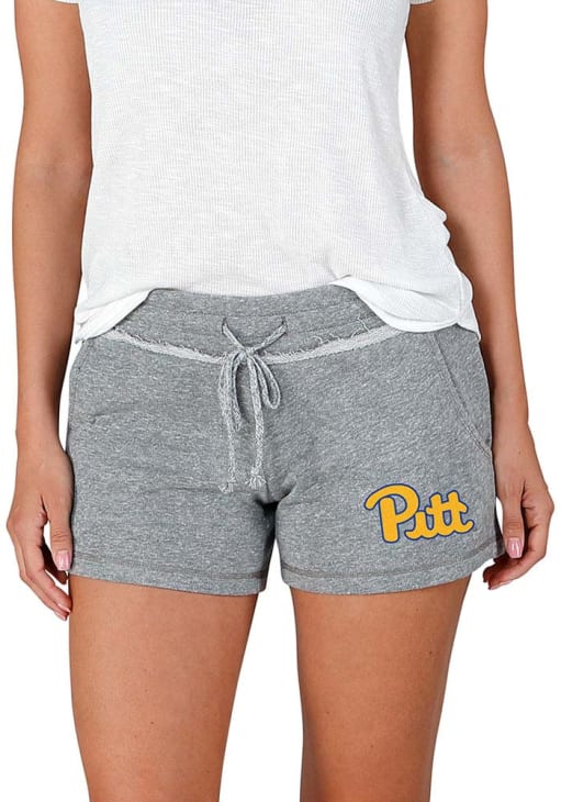 Take your workout to the next level in these Pitt Panthers Womens Grey Mainstream Terry Shorts! These Panthers Shorts are great for any Panthers fan who wants to show off their team spirit during their fitness routine. These Pitt Panthers Shorts feature a left leg team logo.