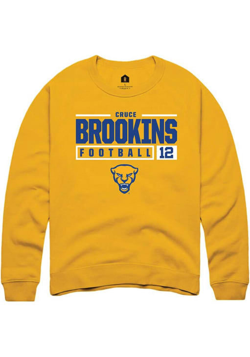 Gear up for the ultimate game day experience with this remarkable Pitt PanthersMens Gold NIL Stacked Box Crew Sweatshirt! Designed with the true fan in mind, this Panthers Long Sleeve Crew Sweatshirt features a custom graphic with player's name and number. Stay warm and comfortable with this Mens Panthers Panthers Crew Sweatshirt.