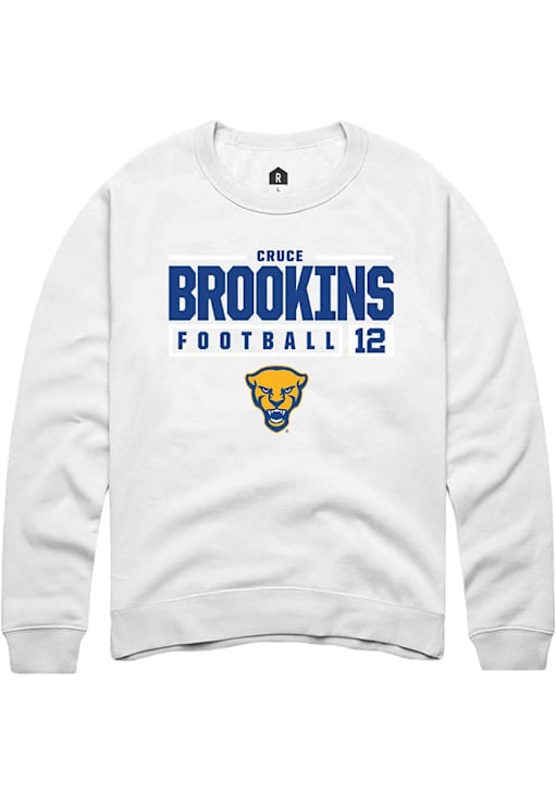 Cruce Brookins Rally Mens White Pitt Panthers NIL Stacked Box Crew Sweatshirt
